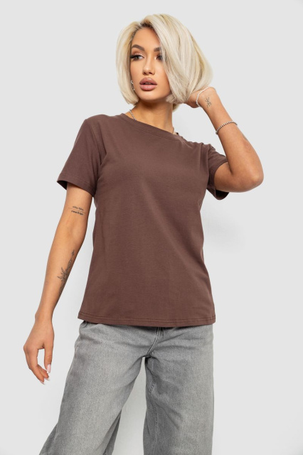 Футболка жіноча однотонна, колір коричневий, 204R3333