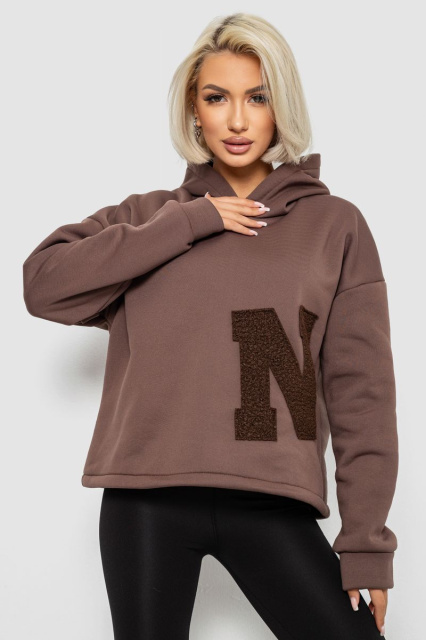 Худі жіночий з капюшоном на флісі, колір коричневий, 257R335