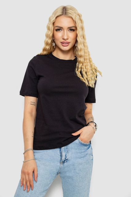 Футболка жіноча однотонна, колір чорний, 241R1800