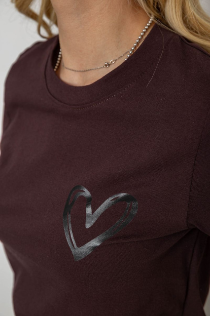 Жіноча футболка з принтом, колір шоколадний, 241R128