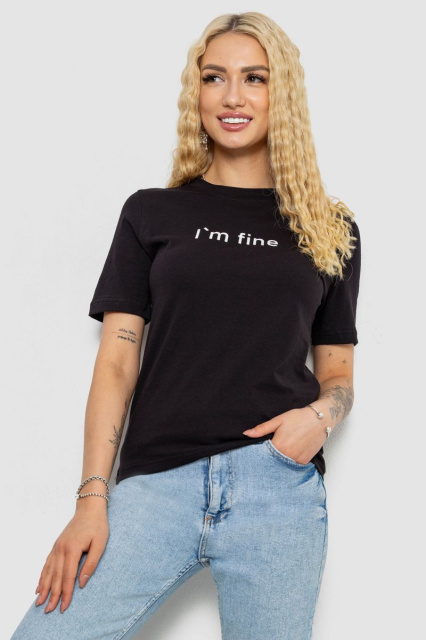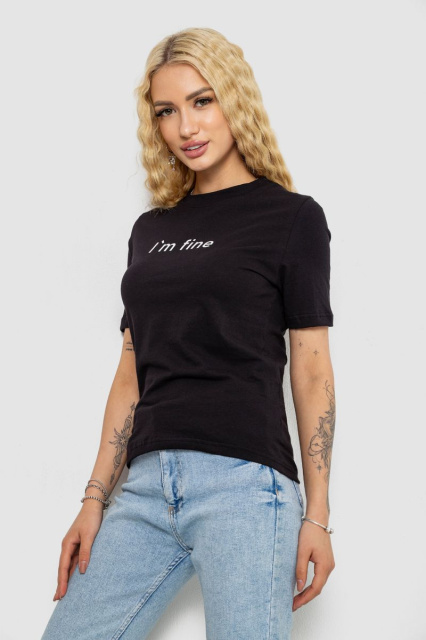 Футболка жіноча з принтом, колір чорний, 241R1833