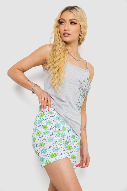 Жіноча піжама з принтом, колір сірий, 238R3052