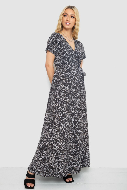 Сарафан із принтом на запах, колір чорно-бежевий, 241R182