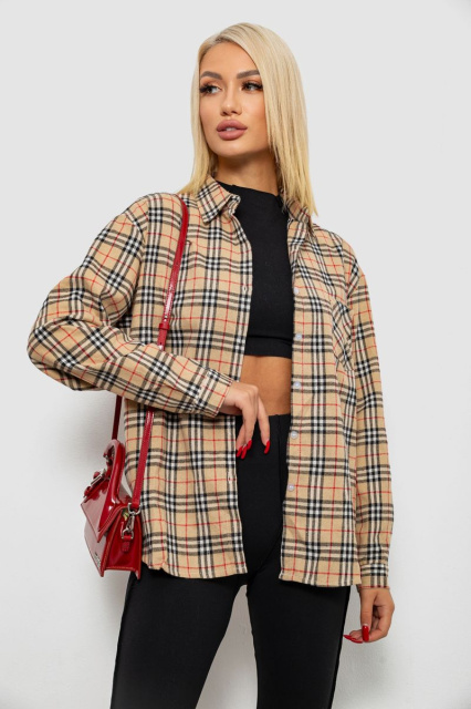 Сорочка жіноча в клітинку, колір бежевий, 244R1070-3