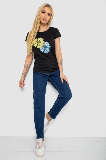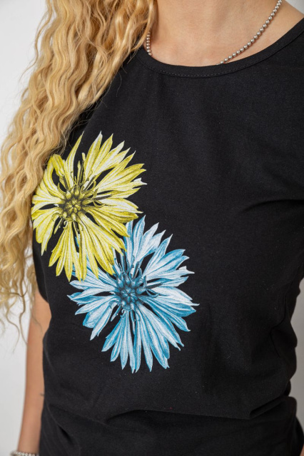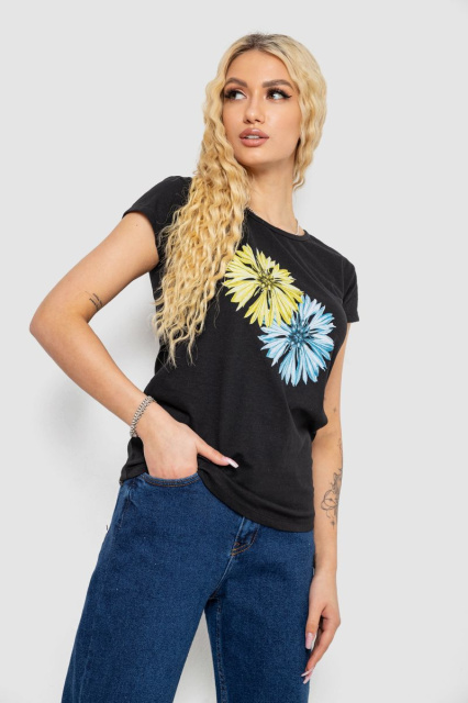 Футболка жіноча з принтом, колір чорний, 244R2215