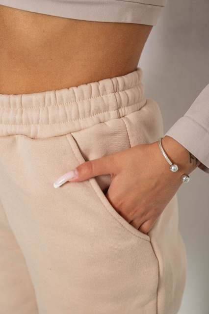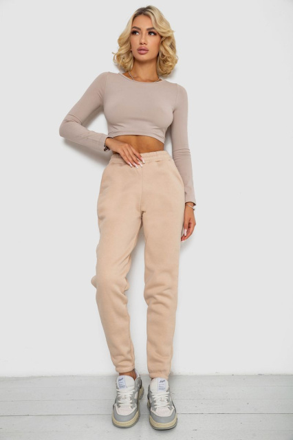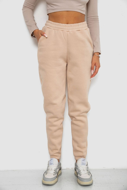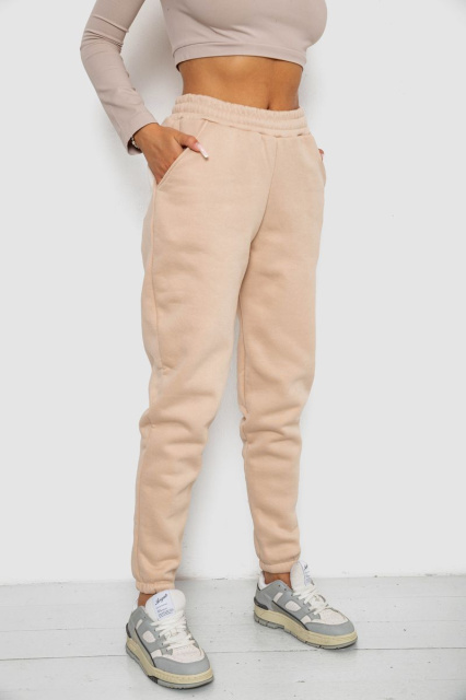 Спортивні штани жіночі на флісі, колір світло-бежевий, 238R57013