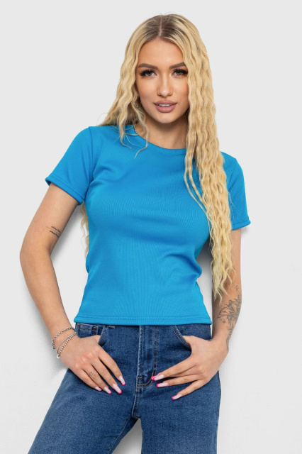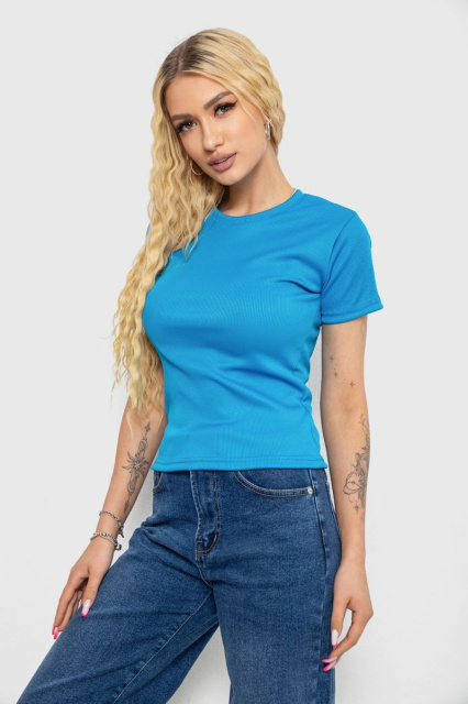 Футболка жіноча в рубчик, колір темно-блакитний, 238R123-2
