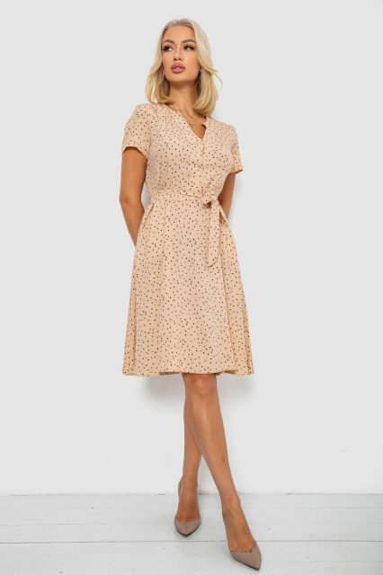 Сукня софт з принтом у горох, колір бежевий, 230R0032-3