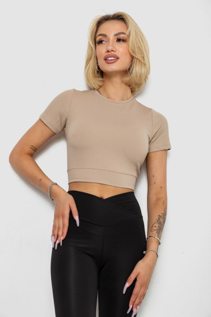 Футболка - топ жіноча в рубчик, колір бежевий, 238R58210