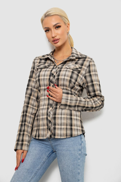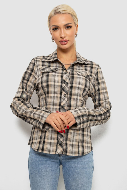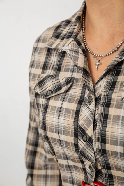Сорочка жіноча в клітку, колір бежевий, 230R064-1
