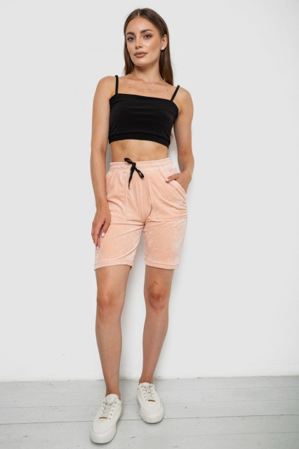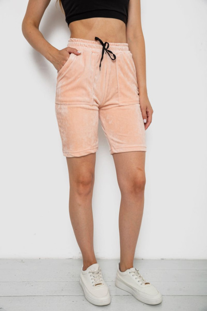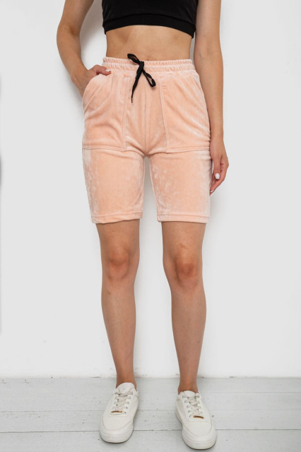 Шорти жіночі однотонні велюрові, колір персиковий, 238R58169