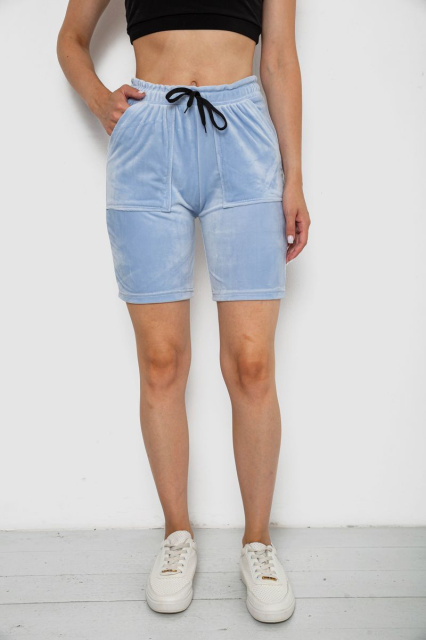 Шорти жіночі однотонні велюрові, колір блакитний, 238R58169